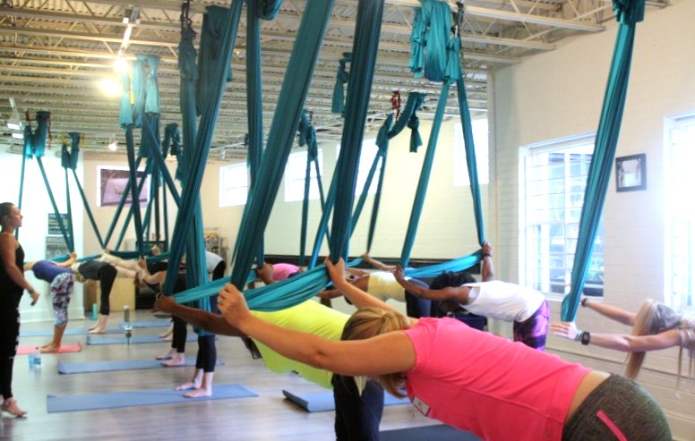 If you’re not familiar with Aerial Yoga then you need to check it out at Air Charlotte! I have to admit I was a newbie, who is also scared of heights, but loved the challenged.